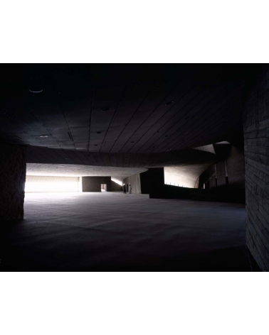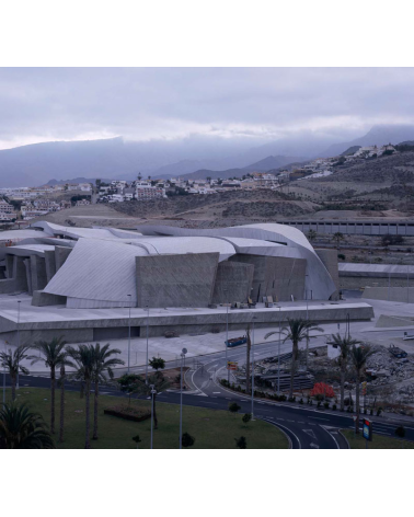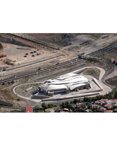 El centro de Convenciones Costa Adeje en Tenerife convive con un difícil entorno debido a su proximidad con la red de autopistas del Sur de Tenerife. Los únicos referentes del área circundante son el paisaje semidesértico de roca chasnera y el mar, cuya imponente presencia enmarca el edificio con la constante visión de la isla de La Gomera. La respuesta ante esta situación nace de la valoración del paisaje al prolongarlo con sus rocas geométricas emergentes que albergan los distintos servicios del programa. Estas fallas se disponen favoreciendo el fluir de la cubierta, imaginada como un líquido en movimiento que acota el espacio en todas sus direcciones. El líquido se desdobla y multiplica produciendo grietas de luz y ventilación que intensifican las sensación de ligereza de la ondulante superficie.